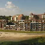 Offering a terrace with outdoor dining areas, the 4-star beachfront Akrotiria Beach Apart Complex Nesebar hotel is about a 10-minute drive from South Beach Ravda. This Nesebar aparthotel is in the Nesebar New Town district, 2.1 km from such natural sights as Nesebar South Beach.